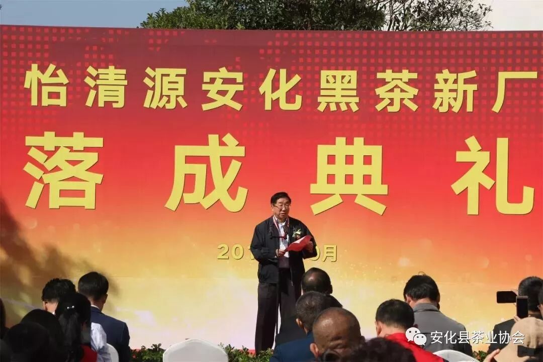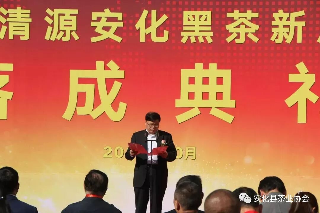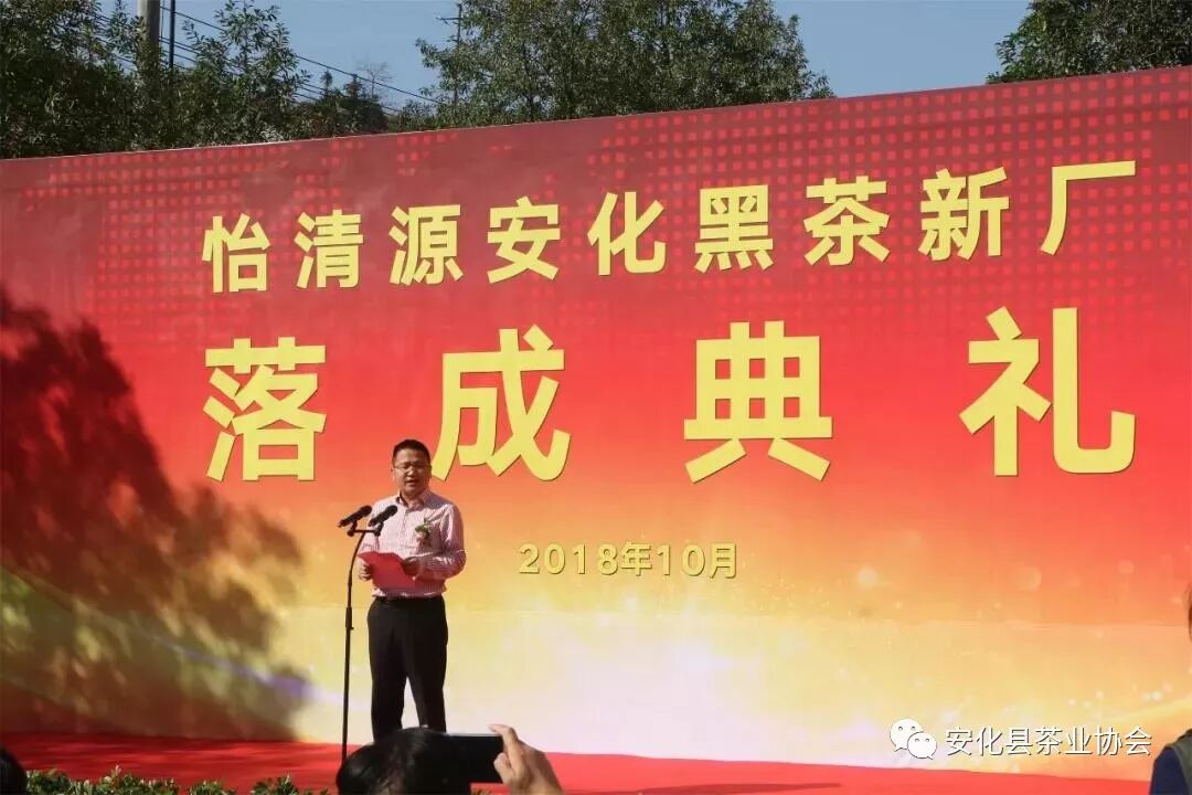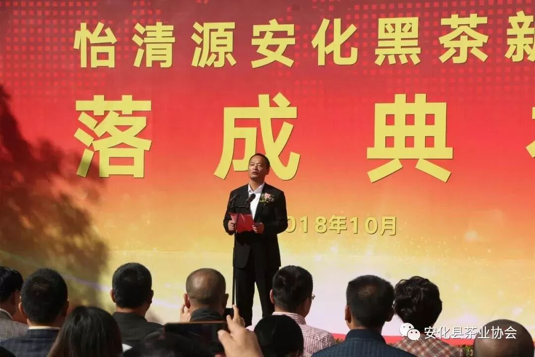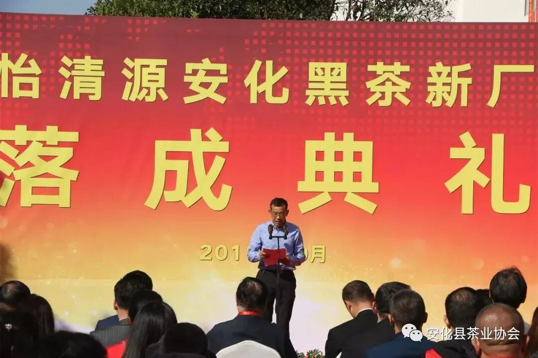 安化縣委副書記王新宇代表縣委縣政府對怡清源安化黑茶新廠房落成表示祝賀。