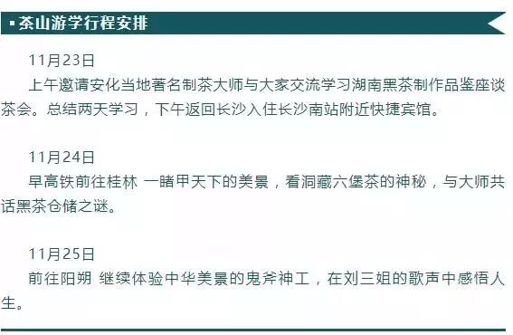 2018年11月21日,雅悅茶書院將再次出發(fā),尋茶,從每一個(gè)黑茶的產(chǎn)區(qū),到每一座鐘靈毓秀的茶山,去感受獨(dú)特的黑茶文化。