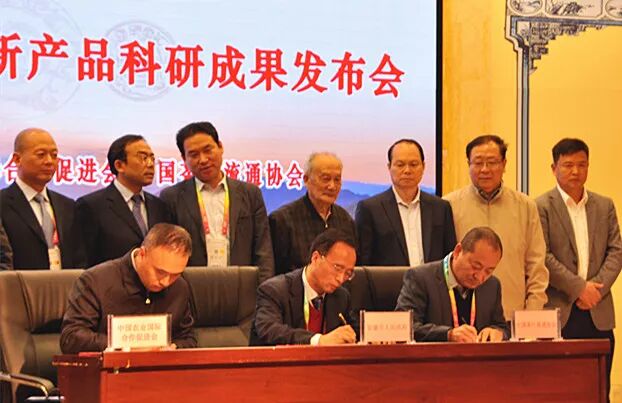 本屆楊凌農(nóng)高會(huì)上舉辦了“安康秦漢古茶恢復(fù)創(chuàng)新產(chǎn)品科研成果發(fā)布會(huì)”,中國茶葉流通協(xié)會(huì)副會(huì)長紀(jì)曉明(右)受邀參加,并代表中茶協(xié)與安康市人民政府、中國農(nóng)業(yè)國際合作促進(jìn)會(huì)簽約。