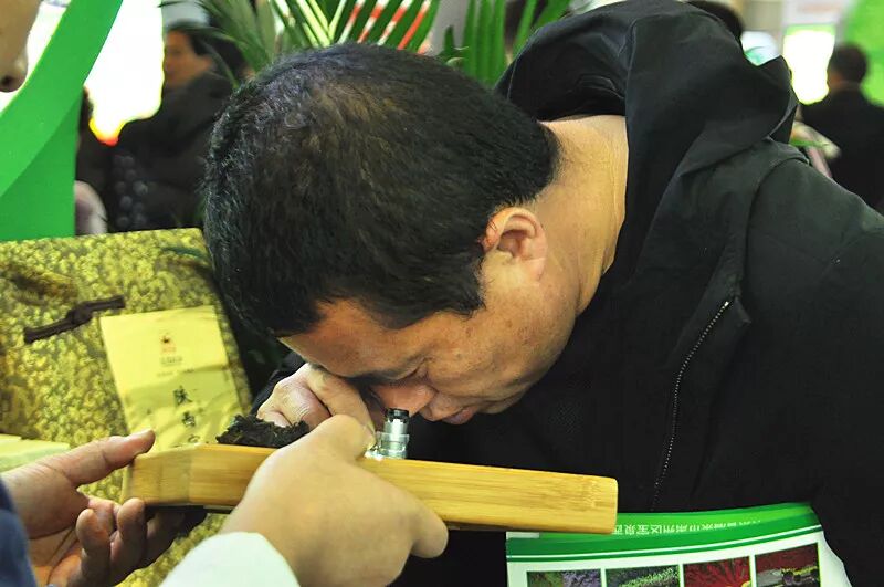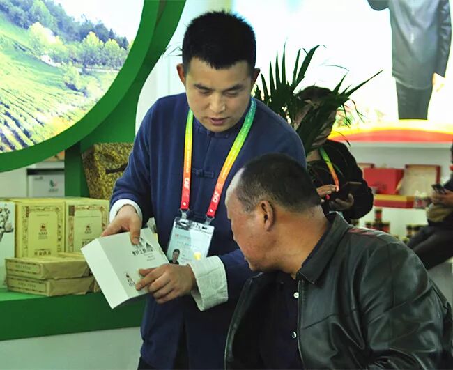 工作人員向茶友介紹涇渭茯茶金獎(jiǎng)產(chǎn)品——【秦嶺之巔】