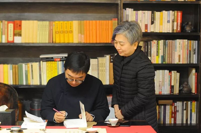 楚天茶道舒松老師特意邀請萬里茶道研究專家劉曉航教授來到講座現(xiàn)場,周重林老師與劉曉航教授深入交流,并交換書禮,合影留念。