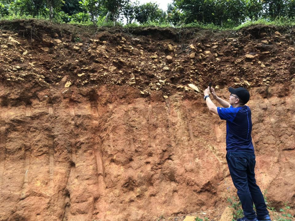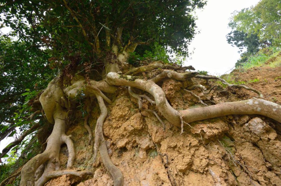 在古六大茶山,人為干預(yù)太早,太深,僅僅看地面以上,很難發(fā)現(xiàn)高大的古茶樹。但換個角度看看,觀察一些切面,就會發(fā)現(xiàn)古樹茶樹根穿過沃土層、沙層 (酸性)進(jìn)入深層,吸收深層營養(yǎng)。