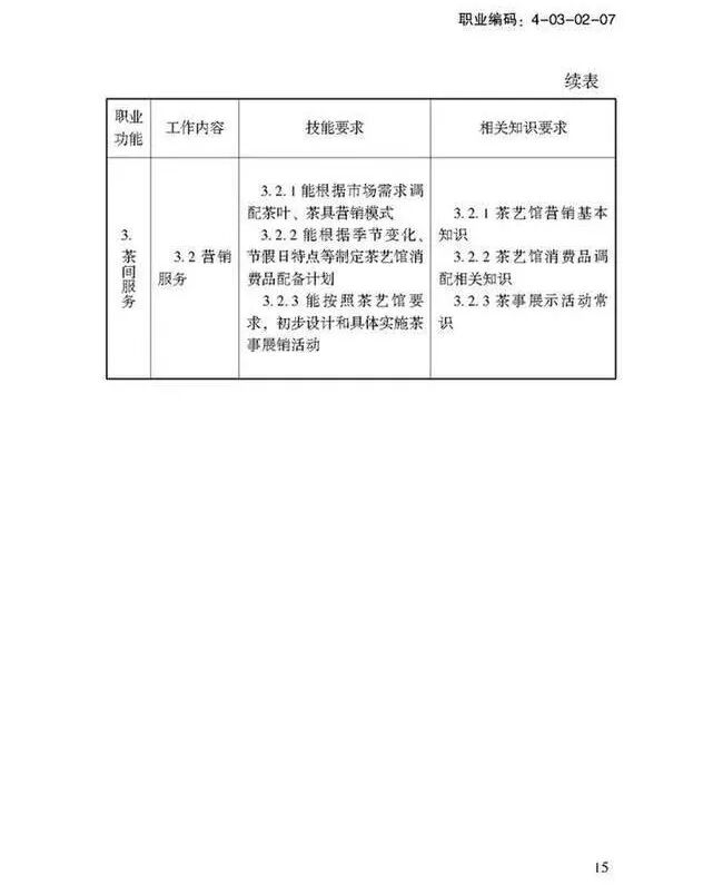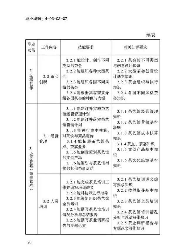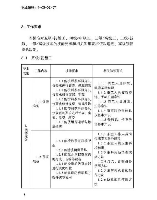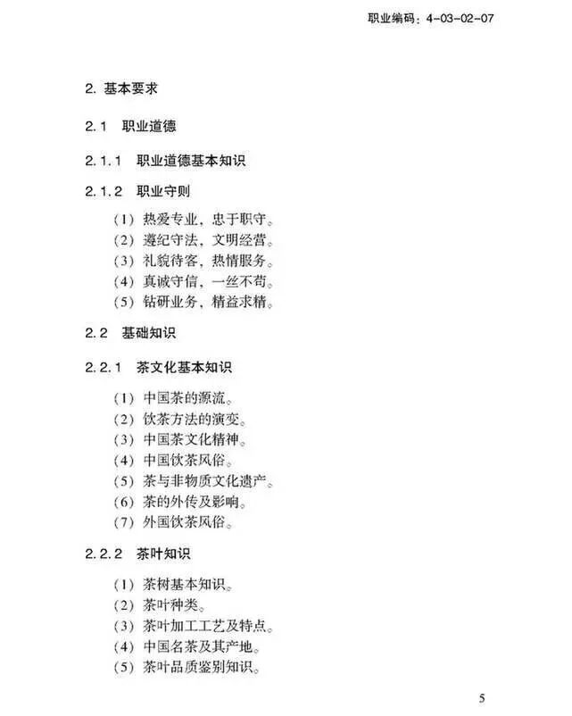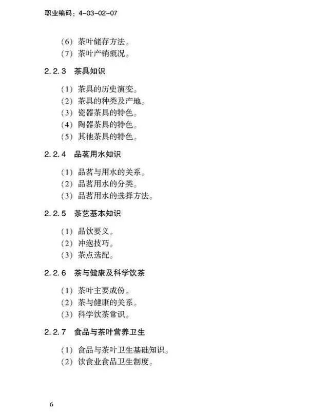第五,新標準明確了中外交流中,茶藝師應該掌握的知識。隨著茶文化中外交流活動逐年增加,茶藝師需要明確在茶文化中外交流中扮演的角色。新標準要求茶藝技師以上職稱的茶藝師必須掌握主持、策劃茶會的技能,并對此提出了細節(jié)性的要求。(文末附原件)