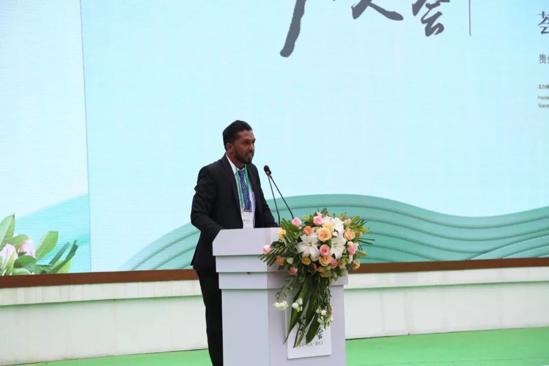 魯貝森·伽馬吉在致辭中表達了對受邀參加2018都勻毛尖(國際)茶人會喜悅之情,并代表斯里蘭卡消費者合作社聯(lián)合會有限公司真誠邀約黔南開展茶葉貿易。
