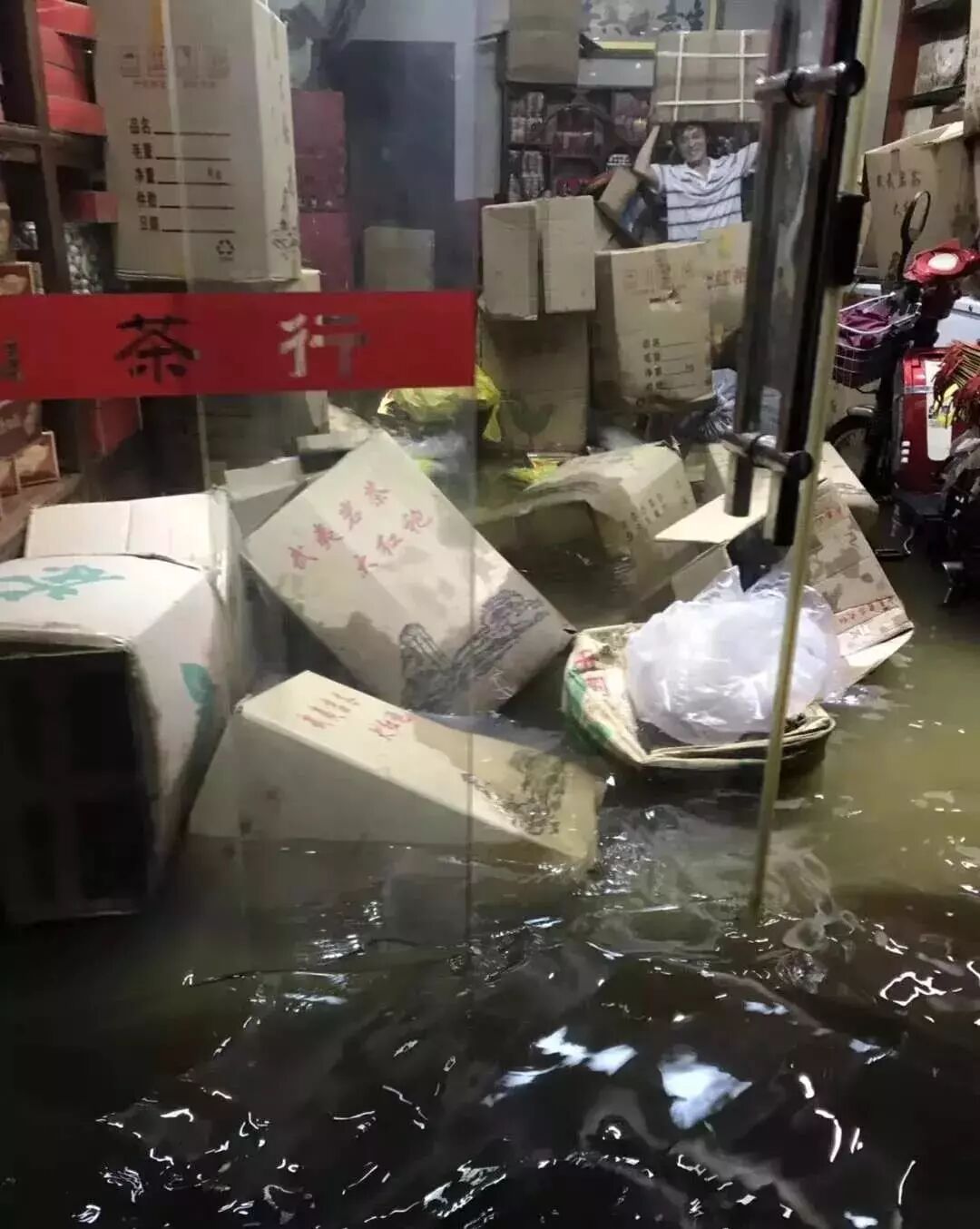 古橋茶街,中茶街,南方茶業(yè)市場,廣易均泰茶業(yè)城,茶博園一樓等店面受損嚴(yán)重!不少一層鋪面的茶葉店主損失嚴(yán)重,原本在家躲臺風(fēng)的店鋪老板一聽到茶葉城受災(zāi),飛奔過來搶救自己店面,也有茶葉店老板抱著被泡濕的貴重茶神情呆滯,心痛欲哭。不久后,廣東消防隊也趕往現(xiàn)場救災(zāi),周邊、路人們也發(fā)起搶救鋪面。所幸是這場災(zāi)難目前沒有人員傷亡,但是茶葉損失無法統(tǒng)計!