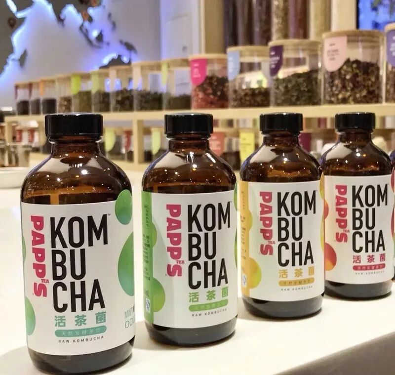 近幾年,有一款名叫 Kombucha 的紅茶菌飲料在北美走紅。Kombucha 又名康普茶,作為一款功能性飲料,富含大量的益生菌(醋酸菌、乳酸菌)、維生素B,有利于消化系統(tǒng)和免疫系統(tǒng)。在健康屬性的加持下,Kombucha 受到不少博主、名人的青睞,連超市里也出現(xiàn)了專門的貨架。