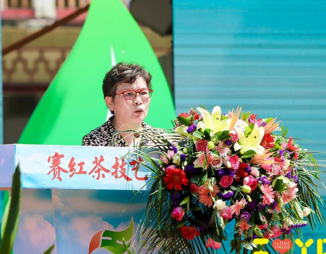 清遠(yuǎn)市人民政府副市長雷玉春宣布2018首屆全國紅茶加工制作大賽暨英德紅茶互聯(lián)網(wǎng)文化節(jié)正式啟幕,中國茶葉流通協(xié)會副會長王秀蘭、廣東省農(nóng)業(yè)廳總農(nóng)藝師陸國煌、清遠(yuǎn)市人民政府副市長雷玉春、廣東省農(nóng)科院副院長何秀古、清遠(yuǎn)市農(nóng)業(yè)局局長張偉杰、英德市人民政府副市長黃永晨,廣東省茶業(yè)行業(yè)協(xié)會專職副會長張黎明、華南農(nóng)業(yè)大學(xué)園藝學(xué)院副院長曹藩榮共同為大賽啟幕