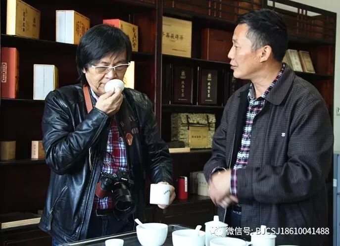 吳德亮先生與周興長(zhǎng)總經(jīng)理品鑒涇渭茯茶產(chǎn)品。