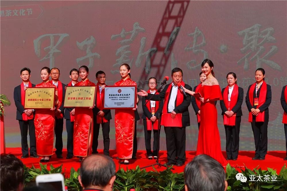 蒞臨慶典的領(lǐng)導(dǎo)和嘉賓有著名茶學(xué)專家、中國工程院院士陳宗懋,中國茶葉流通協(xié)會(huì)會(huì)長王慶,杭州茶葉研究院院長尹祎,全國政協(xié)委員、湖南供銷合作總社巡視員李云才,湖南農(nóng)業(yè)大學(xué)黨委書記周清明,濟(jì)南市供銷社主任張國松,湖南省商務(wù)廳黨組副書記、副廳長肖彬,湖南省文化廳副廳長張帆,全國政協(xié)委員、中國作協(xié)影視文學(xué)委員會(huì)副主任艾克拜爾•米吉提,湖南農(nóng)業(yè)大學(xué)副校長曾福生,益陽市人大常委會(huì)副主任陳佑才,著名茶學(xué)專家、湖南農(nóng)大教授施兆鵬,湖南農(nóng)業(yè)大學(xué)教授、博士生導(dǎo)師劉仲華,馬來西亞國際茶文化協(xié)會(huì)理事長蕭慧娟,臺(tái)灣中華茶藝聯(lián)誼會(huì)理事長陳懷遠(yuǎn),韓國韓瑞大學(xué)教授姜育發(fā),日本茶葉協(xié)會(huì)會(huì)長王亞雷,湖南省供銷合作總社副巡視員程念貴,中國茶葉流通協(xié)會(huì)副會(huì)長、全國茶葉標(biāo)準(zhǔn)化委員會(huì)副主任委員張士康,原中國農(nóng)副產(chǎn)品公司常務(wù)副總經(jīng)理于觀亭,湖南省供銷社原主任陳德禮,益陽市人大常委會(huì)原主任李穩(wěn)石,益陽市政協(xié)原副主席、益陽市茶葉學(xué)會(huì)名譽(yù)理事長陳本佳,湖南電視臺(tái)原副臺(tái)長曹樹榮,湖南省政府農(nóng)村辦原副巡視員、湖南省硬筆書法家協(xié)會(huì)主席崔國強(qiáng),湖南省茶業(yè)協(xié)會(huì)榮譽(yù)會(huì)長曹文成。