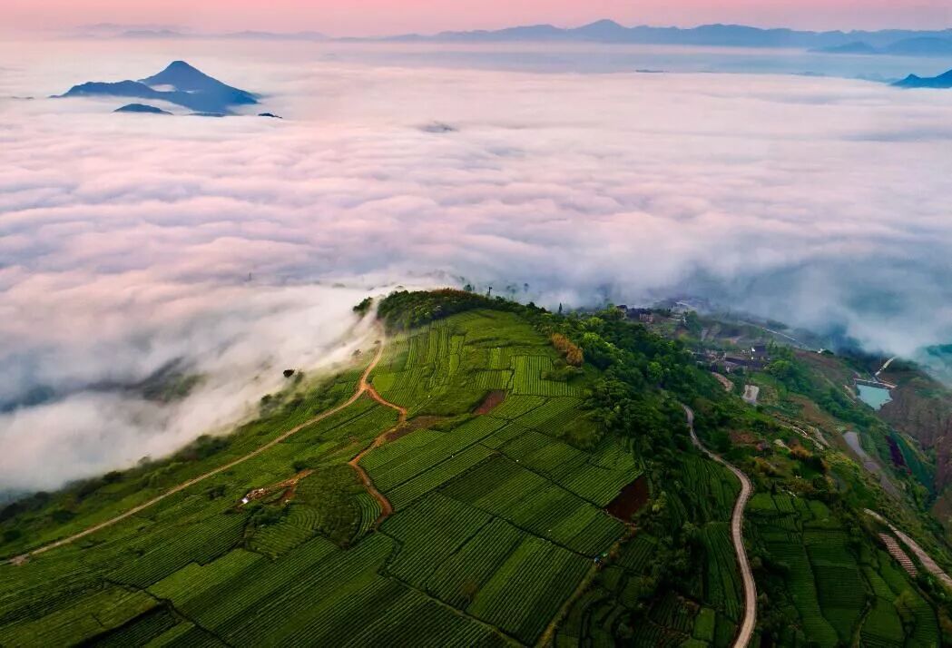 在雪峰山脈北段,有一塊清涼避暑的勝地,四面環(huán)山、峰巒疊嶂,因地形如文房硯臺(tái),常年云霧繚繞,故取名“云臺(tái)山”。“中華生態(tài)文明茶園”、“最美生態(tài)茶園”——云上茶園就在這茫茫云海之上,吮吸著霧露,散發(fā)著芬芳,美若仙境。