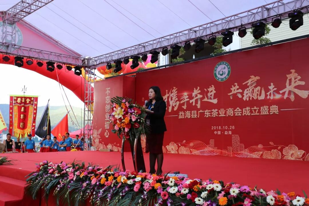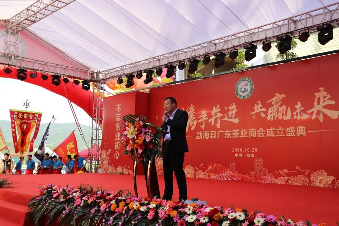 此次慶典活動,我們邀請參會的單位有600多家,參會人數(shù)達900多人,規(guī)模宏大,場面壯觀。會上,勐海縣社會組織黨委專職副書記何江濤宣讀了同意《勐??h廣東茶業(yè)商會成立》的批文,廣東省人民政府駐昆明辦事處處長謝劉平,中國茶葉流通協(xié)會普洱茶專業(yè)委員會主任羅乃炘,西雙版納州工商聯(lián)(總商會)常務(wù)副主席馮兆昌,勐??h人民政府副縣長玉帕新分別致辭,勐海縣廣東茶業(yè)商會會長吳江輝作了歡迎辭。