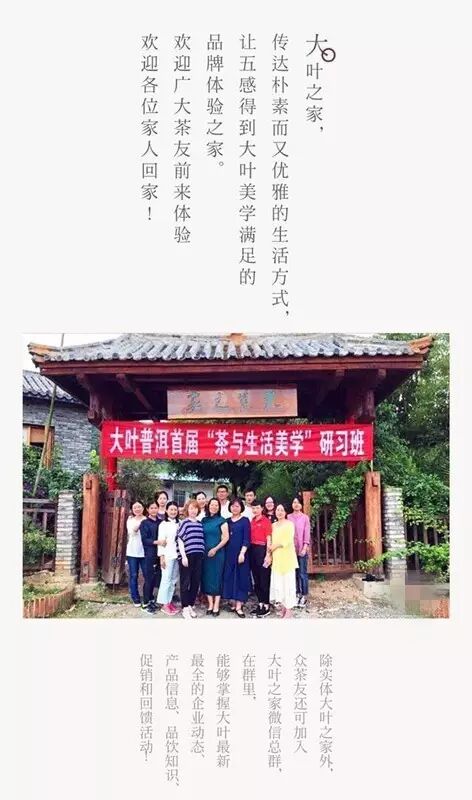 “大葉普洱(天津)大衍茶坊”作為大葉在京津冀地區(qū)市場(chǎng)的核心銷售機(jī)構(gòu),汲取了大葉人本真做茶的經(jīng)營(yíng)理念,又結(jié)合了北方人的營(yíng)銷模式。將企業(yè)文化推廣的同時(shí)提升自我,傳播茶文化、茶道、生活美學(xué)等正能量......