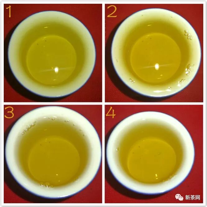第1泡,湯色蜜黃有一定粘稠度,茶湯含香,花蜜香明顯;茶湯入口柔滑,無苦澀感,花蜜香充滿口腔和喉部,并有一定留存度;隨后舌尖處有明顯生津感,回甘暫不明顯。