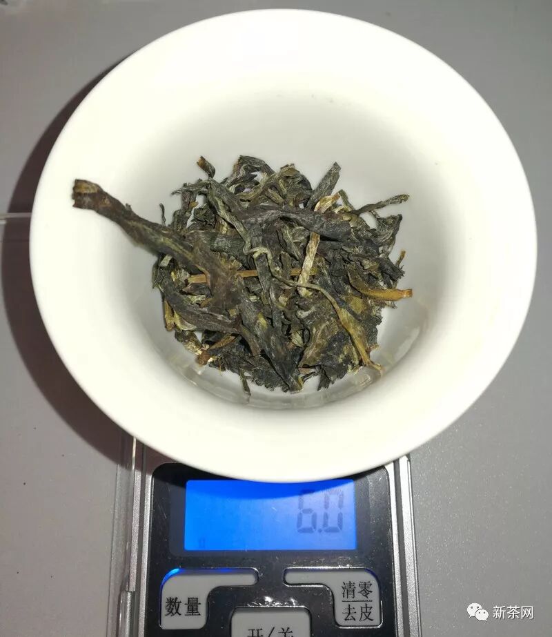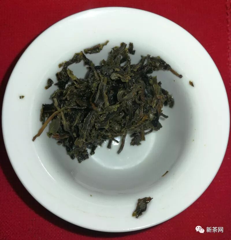第4泡,茶湯粘稠,湯香略減;茶湯入口有澀感,澀感主要集中于舌面,慢慢可化,牙齒外側(cè)有微弱收斂感;生津明顯,回甘較弱;喉韻香甜持久,香甜感能向下延伸,似乎可達腹部;此時再聞茶底,花蜜香已變?nèi)趿嗽S多,見下圖: