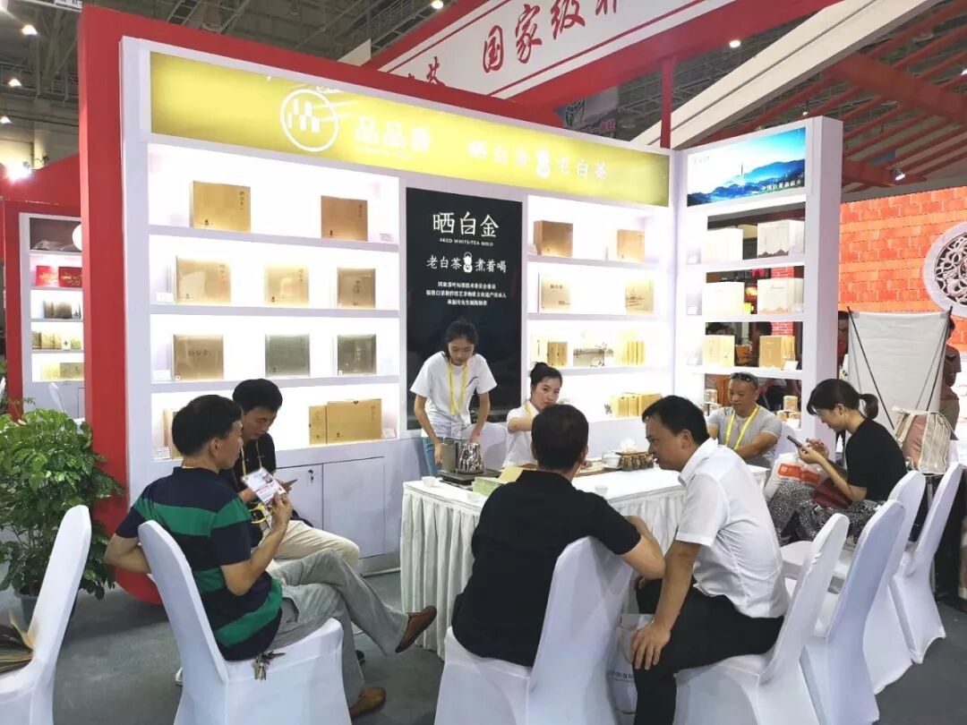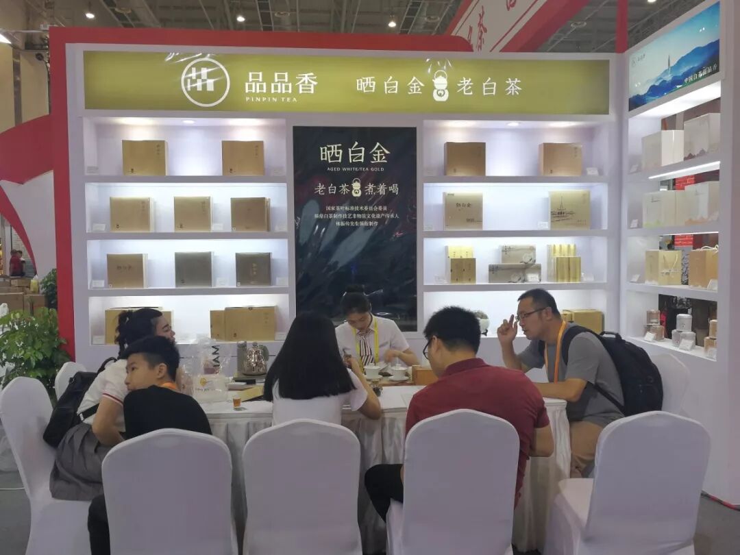 而在品品香的展位上人來人往,絡(luò)繹不絕,走過路過的參展人員都為空氣中時而淡雅時而濃郁的福鼎白茶停下腳步,品一杯毫香蜜韻的白毫銀針,或者一杯香氣純正的白牡丹,更有許多人被曬白金老白茶獨特的魅力深深吸引,煮一壺老茶,茶香濃郁,品一杯老白茶,唇齒留香,在一泡、一煮、一品中是茶客們對美好茶生活的憧憬。