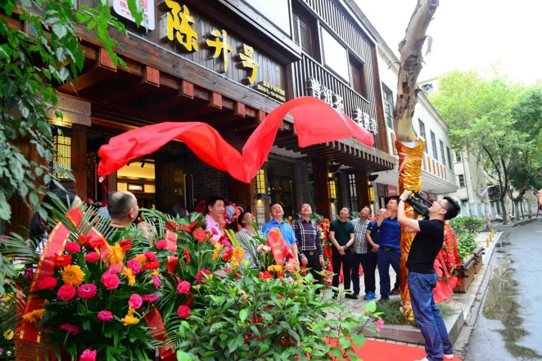 在親朋好友的共同見證下,店主楊先生揭開了新店的招牌,從此陳升號大家庭又多了一位新成員。