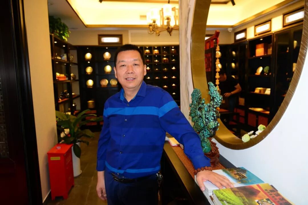 新店正堂,擺放著一件讓店主楊先生愛不釋手的“寶物”——一塊形似中國地圖的綠松石。材質(zhì)珍貴,造型奇特,這件“寶物”格外引人矚目,大家紛紛拍照,贊美之詞不絕于耳。