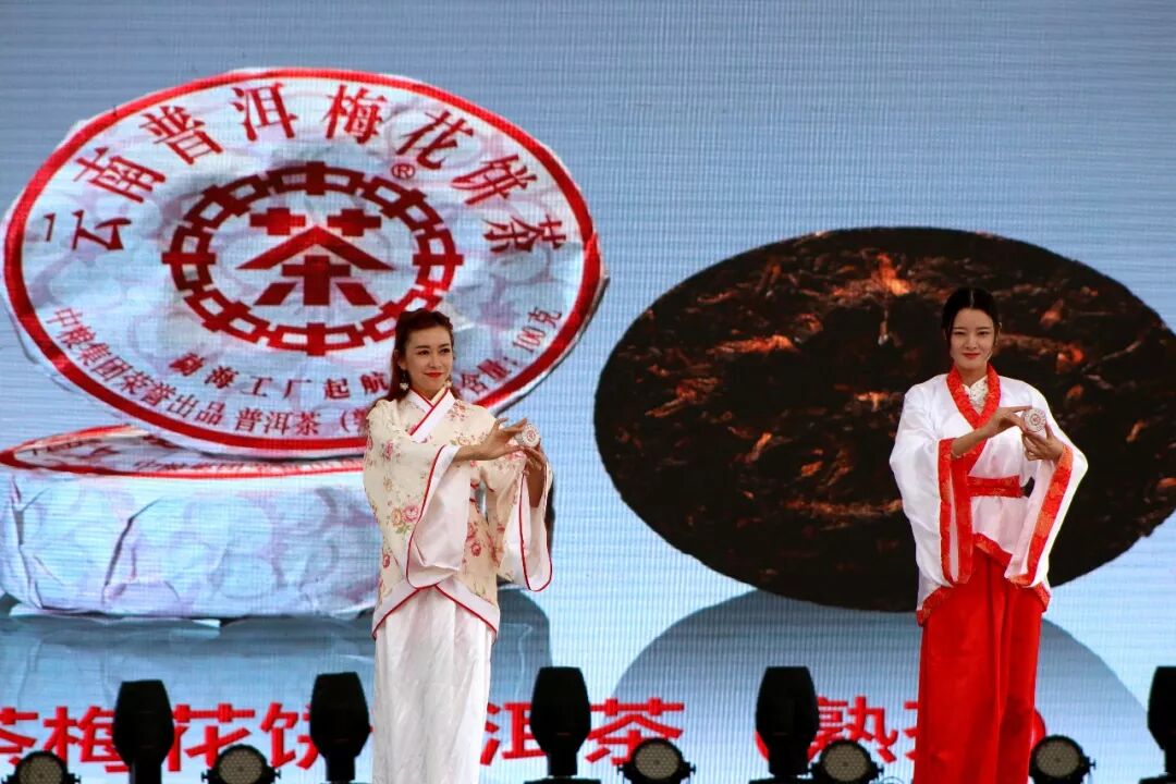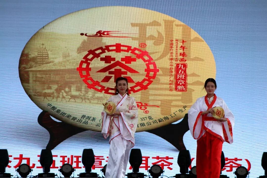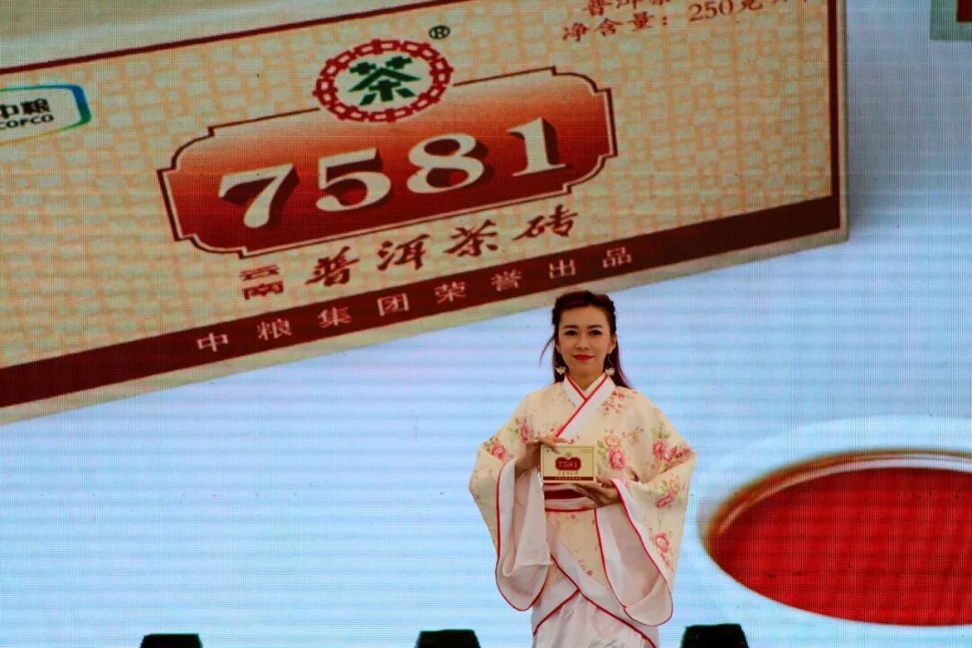 模特向賓客們展示中茶普洱經(jīng)典產(chǎn)品,通過產(chǎn)品展示中茶普洱的歷史