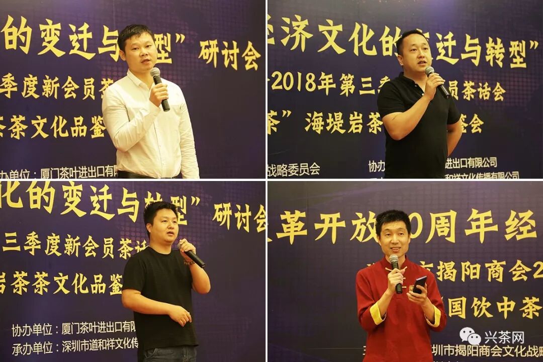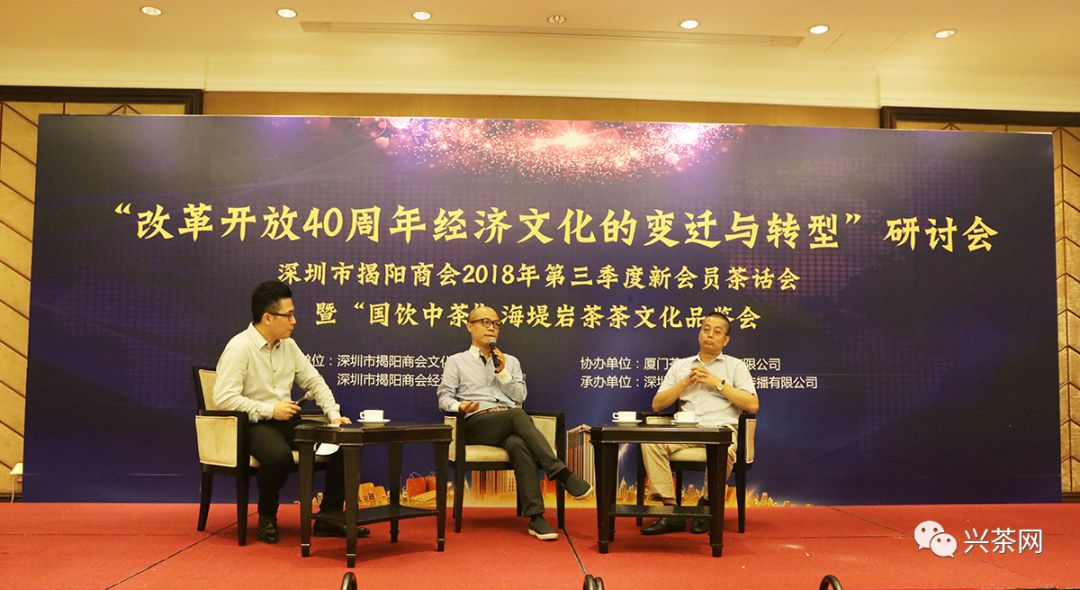 2018年10月16日下午,“改革開放40周年經(jīng)濟文化的變遷與轉(zhuǎn)型”研討會、深圳市揭陽商會2018年第三季度新會員茶話會暨“國飲中茶”海堤巖茶茶文化品鑒會在深圳市龍崗區(qū)中海凱驪酒店成功舉辦。本次活動由深圳市揭陽商會主辦,廈門茶葉進出口有限公司協(xié)辦,深圳市道和祥文化傳播有限公司承辦,近60位嘉賓齊聚一堂,共探改革開放40年發(fā)展歷程,共品佳茗,其樂融融。