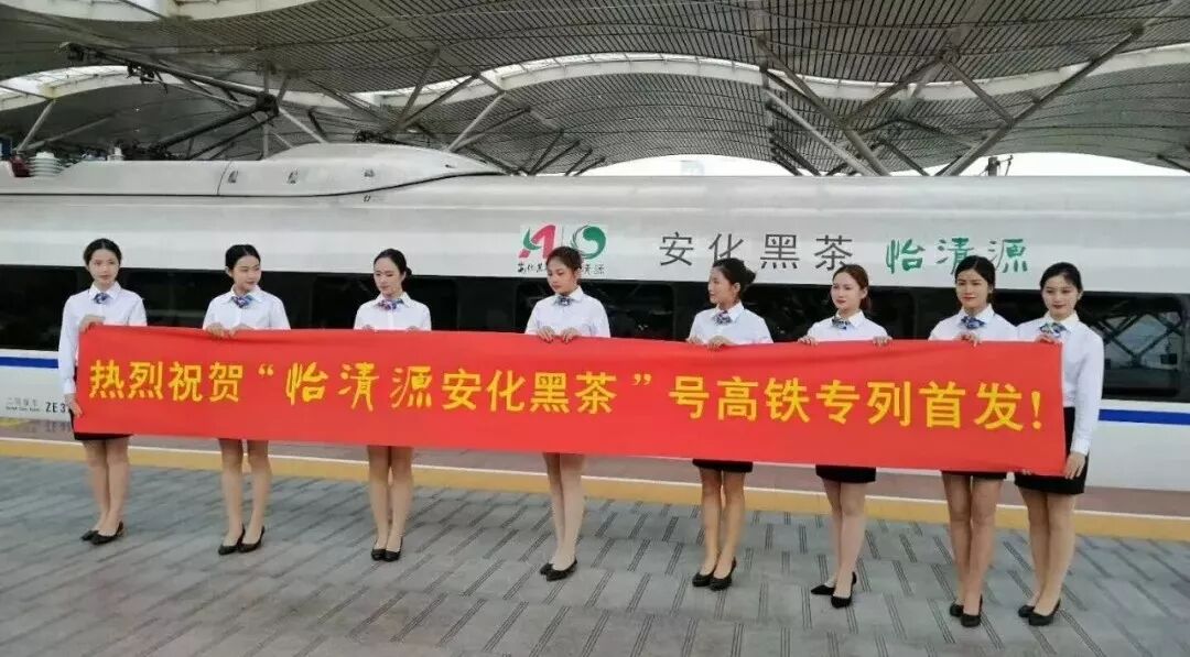 10月19日10時(shí)44分,一輛G2056次廣州南—濟(jì)南西的高鐵動(dòng)車駛出長沙火車南站,車身上幾個(gè)巨大的“安化黑茶怡清源”字樣格外醒目,而車內(nèi)隨處可見怡清源大師原葉茯茶的宣傳品,怡清源“大師茶”高鐵專列由此隆重首發(fā)。