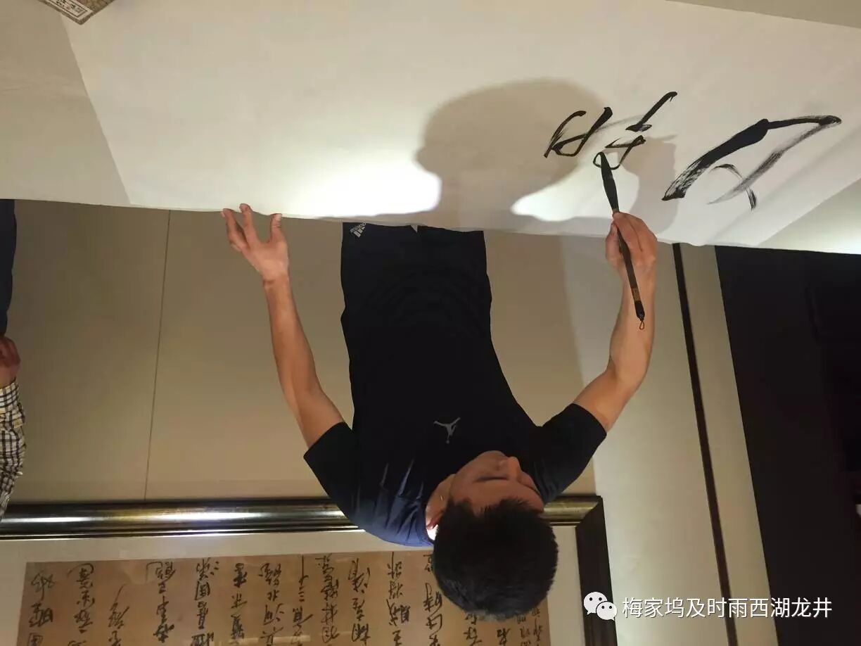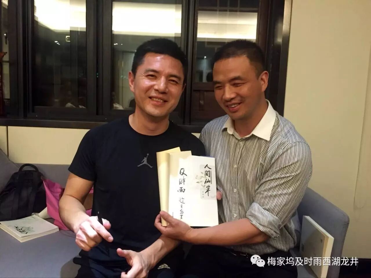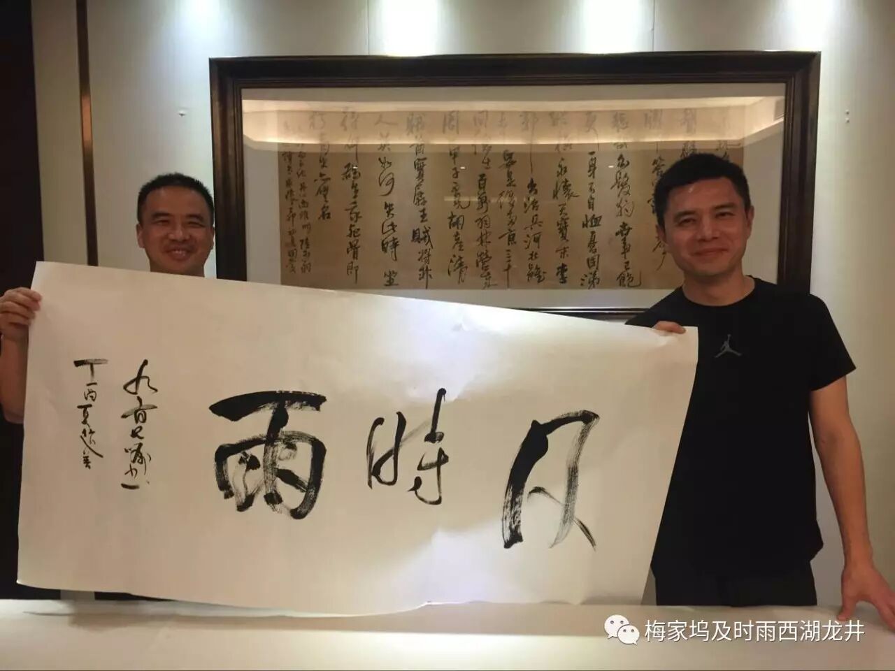 昨晚 “及時雨”主人和趙普有緣一起品及時雨西湖龍井,得知用山泉水泡龍井茶時贊不絕口,并說:“好茶要配好水,在杭州真切的感受到了”。
