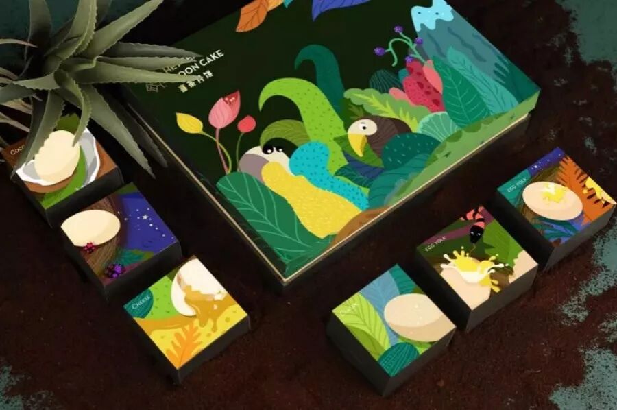 同樣,新式茶飲的頭部品牌喜茶也首次推出了中秋月餅禮盒。相對(duì)于喜茶線下門店的簡(jiǎn)約,這款月餅禮盒則顯得色彩豐富,手繪的畫面感十足,具有濃烈的森林風(fēng)格,并講述了一個(gè)采茶人拾獲美味鳥(niǎo)蛋,并將其制作成月餅,等待月圓之夜“好茶配好月餅”的故事。