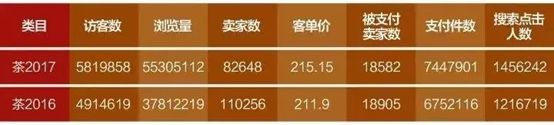 從往年雙十一數(shù)據(jù)來看,2017年雙十一茶葉全品類訪客數(shù),較2016年上升90余萬,游覽量上升1.7千萬,客單價上漲3.25元,支付件數(shù)多出近70萬,搜索點擊人數(shù)提高23萬。