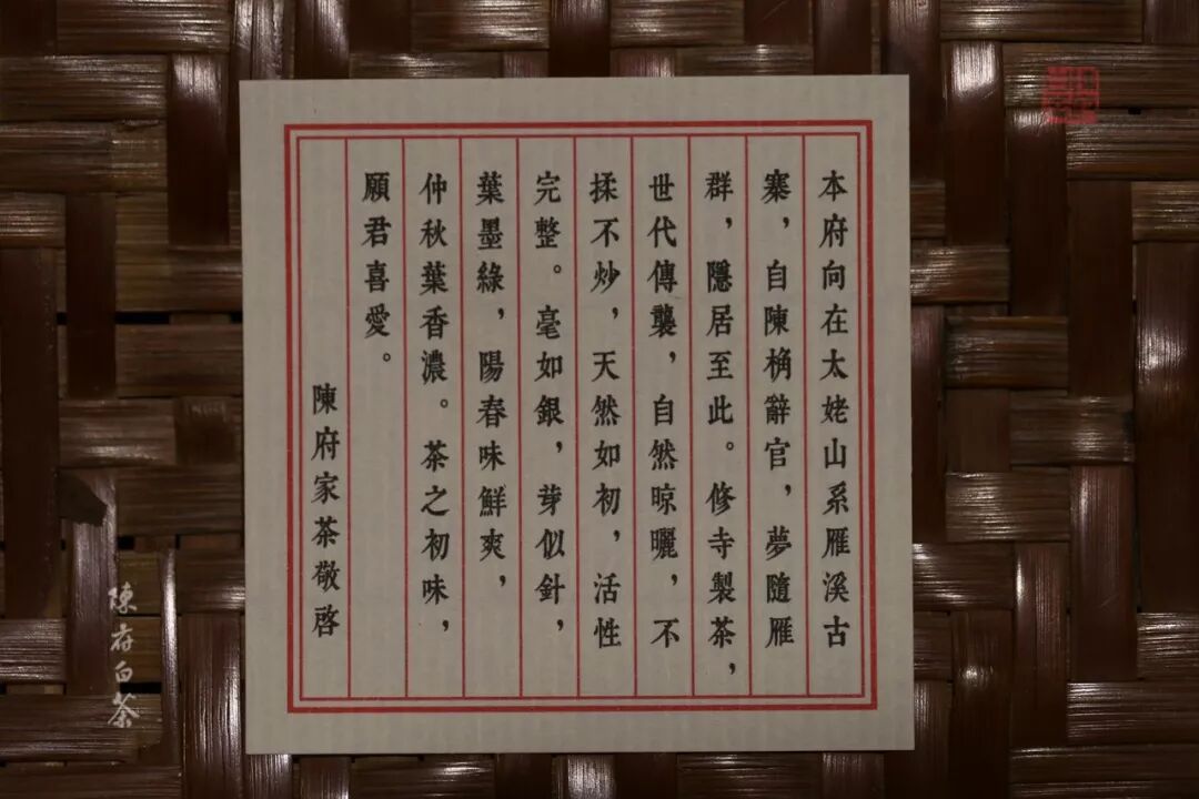 茶之初味,沿用原有外包裝,采用了陳府白茶新內(nèi)票,新內(nèi)票的設(shè)計(jì)風(fēng)格和文字內(nèi)容都有別于舊版。