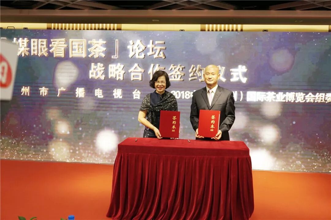 在新聞發(fā)布會現(xiàn)場,還舉行了2018中國(廣州)國際茶業(yè)博覽會組委會與廣州市廣播電視臺 “媒眼看國茶”論壇戰(zhàn)略合作簽約儀式。