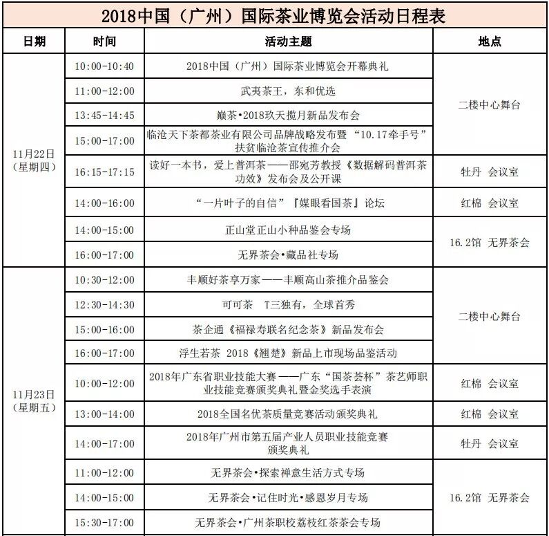 據(jù)新聞發(fā)布會透露,2018中國(廣州)國際茶業(yè)博覽會、第十九屆廣州國際茶文化節(jié)將于11月22-26日在廣州廣交會展館C區(qū)舉行。