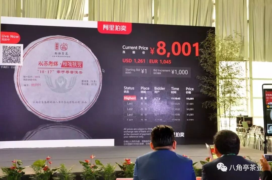 承接2018年昆明茶博會(huì)拍賣活動(dòng),此次拍賣活動(dòng)包含八角亭精準(zhǔn)扶貧產(chǎn)品線上線下互動(dòng)拍賣、云南普洱茶評(píng)價(jià)檢測(cè)中心首款認(rèn)證產(chǎn)品“天驕”普洱茶線上線下互動(dòng)拍賣、演示新零售阿里拍賣系統(tǒng)零售價(jià)降價(jià)拍模式等環(huán)節(jié)。