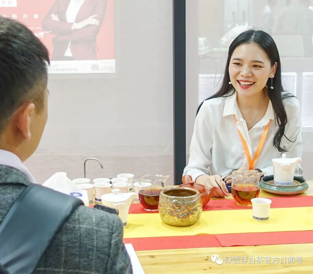 本次展會,品牌標(biāo)桿369系列、華茶一號、松壓系列等悉數(shù)亮相,在人潮洶涌的會展內(nèi)依然脫穎而出,深受茶友的歡迎。我們專業(yè)的茶藝師為每一位進(jìn)入展館的客人沖泡其心儀的茶品,奉上一杯正宗、健康、醉人的福鼎白茶,而恰是這一杯白茶,開啟了茶友們的聚會,我們以茶會友,在這里談心品茶,放松身心,時(shí)光的腳步似乎也慢了下來。