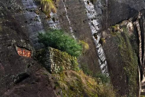 母樹大紅袍長在武夷山風(fēng)景區(qū)里的九龍窠峭壁上,只有6棵。