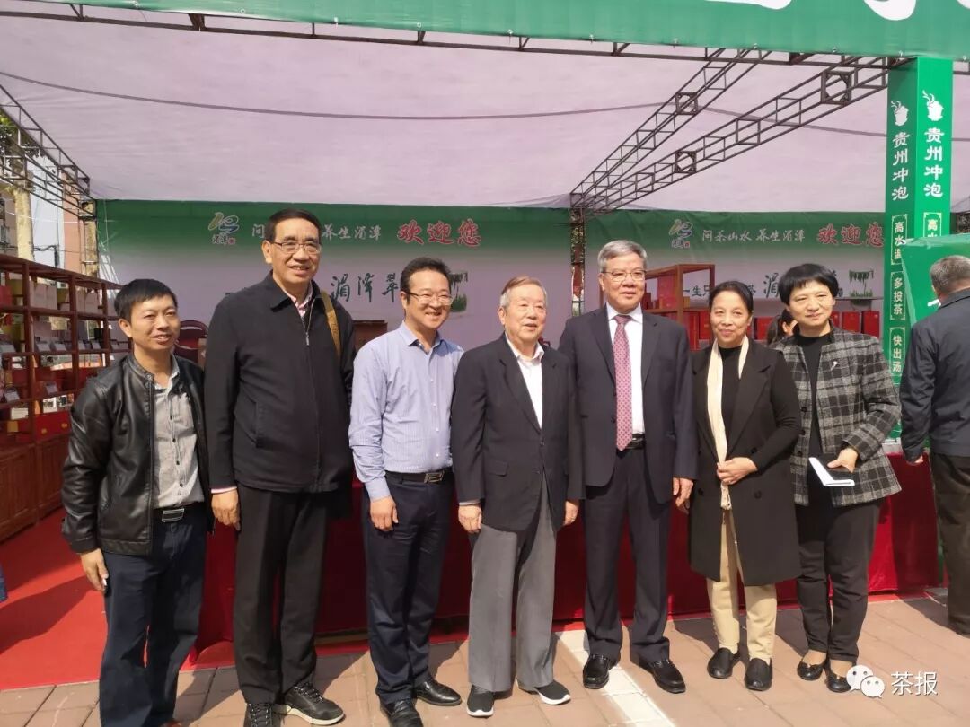 中國國際茶文化研究會常務(wù)副會長孫忠煥(左二)、山東省茶文化協(xié)會常務(wù)會長王裕晏(左一)、山東省茶文化協(xié)會現(xiàn)任會長侯國云一行在貴州茶展位與貴州智慧黔茶產(chǎn)銷聯(lián)盟主席金循先生交流。