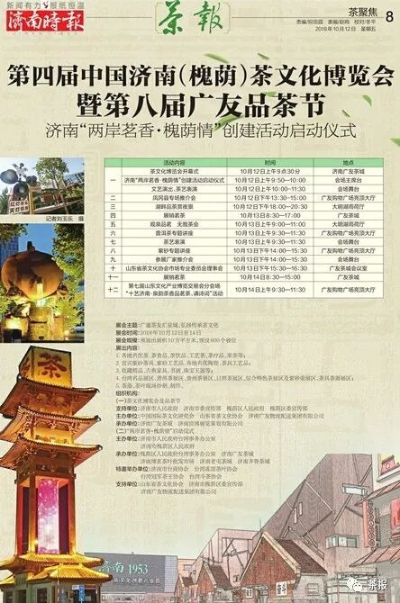 接下來的兩天,還有茶葉推介會、大明湖觀泉品茗無我茶會、詩詞誦讀會等精彩活動輪番上演,廣友茶城熱情邀請廣大濟南市民前來參觀。