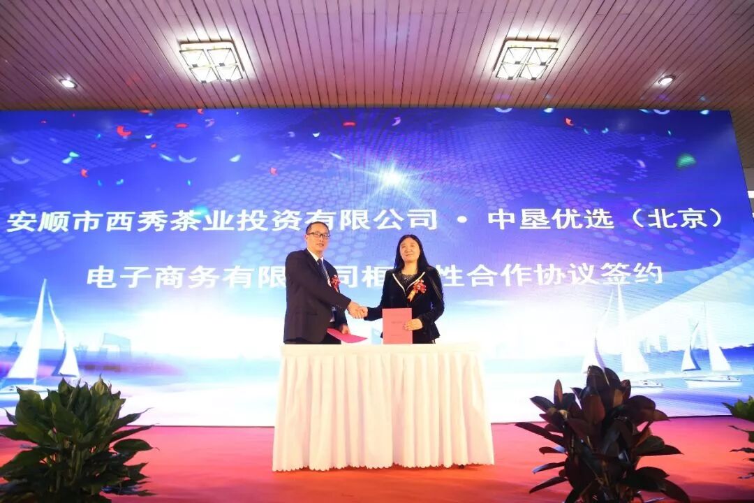 安順市西秀茶業(yè)投資有限公司總經(jīng)理?xiàng)钣廊A與中墾優(yōu)選(北京)電子商務(wù)有限公司代表謝向英簽署雙方框架性合作協(xié)議,雙方將圍繞提升西秀茶品牌,全產(chǎn)業(yè)鏈合作、共享銷售渠道及平臺(tái)等方面進(jìn)行合作;