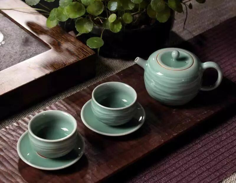 該作品采用龍泉特有朱砂泥手拉坯制成,壺型小巧玲瓏,壺身刻畫似流水之狀態(tài)。