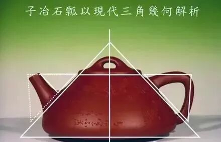 整器巧妙運(yùn)用三角形的對(duì)照變化,身筒與蓋合為一個(gè)大的三角,把圈為三角,鈕為三角,底部三圈足也構(gòu)成三角,堪稱幾何壺型中運(yùn)用三角形的經(jīng)典之作。