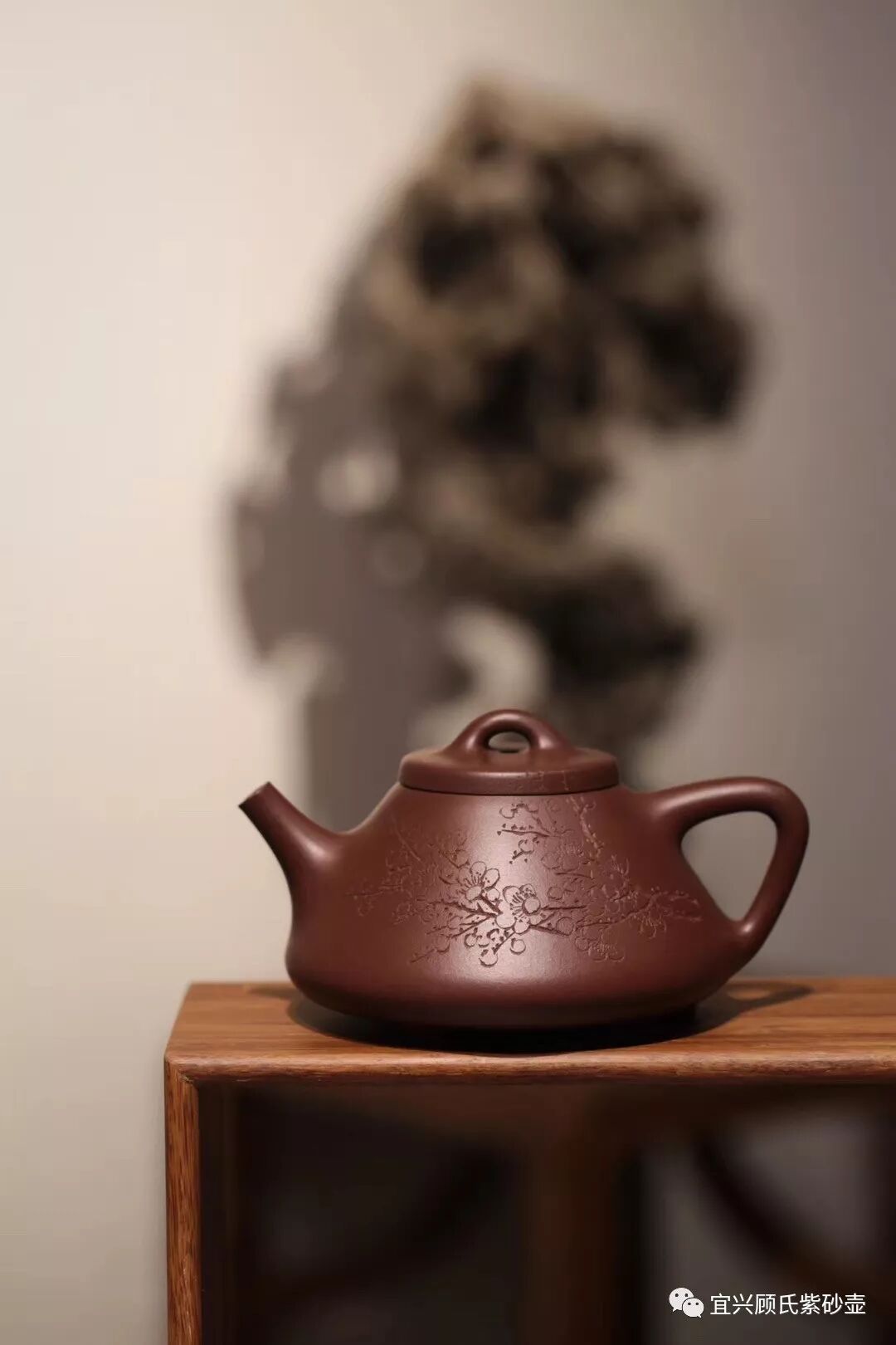 子冶石瓢:壺身是較為明確硬朗的三角形形體,底部和腹部線條比較平滑,壺口較小,比較秀氣,亭亭玉立;