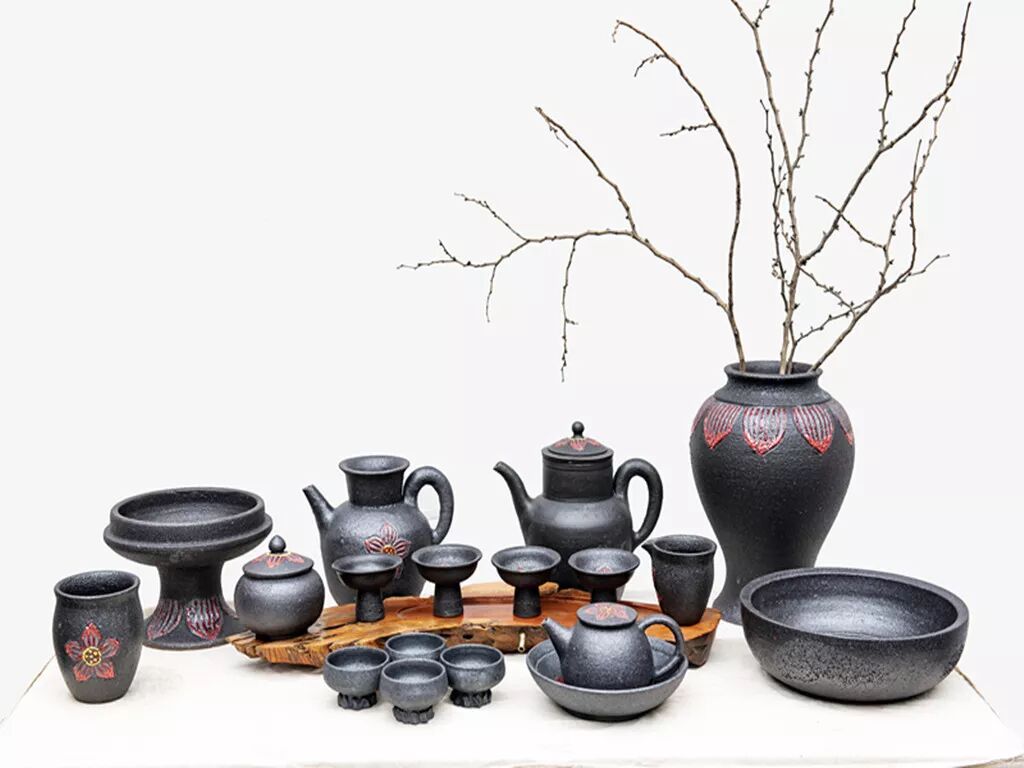 茶席作品的茶具原料采用極具東方文化魅力的黑砂原礦特質(zhì)來展現(xiàn)素心善凈弘法向善的本真,擯棄塵勞的羈絆,處處無心,處處任運(yùn)自然。窯火與陶土本無心,陶者既無心亦有心,心行處滅,曠然無念,是為無心;取法自然,蘊(yùn)藉禪意,是為有心。于天地間捕捉一絲天然,于空靈中采擷一縷靈妙,揉入陶土,隨緣賦形,在灼熾的烈焰中完成了具足圓滿的輪回。陶土、窯火與陶者在不經(jīng)意間水乳交融,熔鑄一體,化作了一層厚重的褚色。