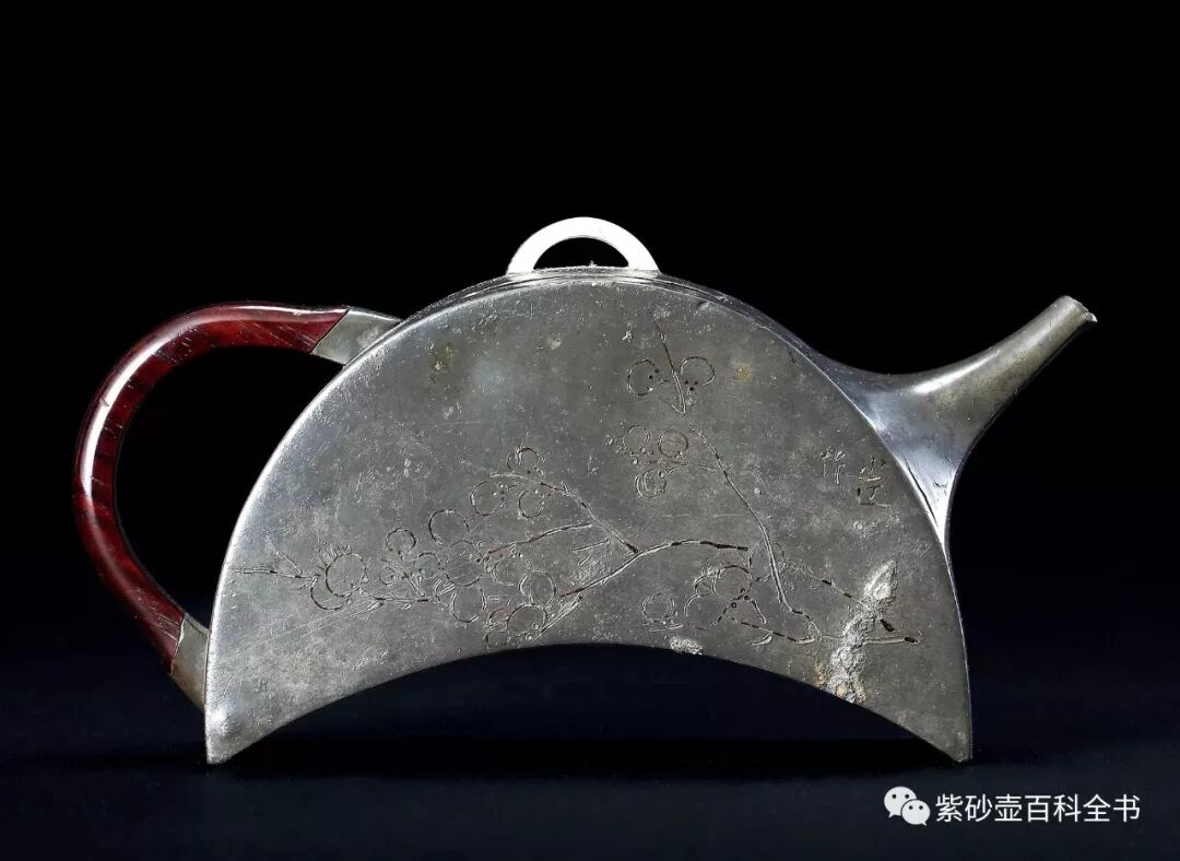 5032 清道光 楊彭年制西溪刻詩(shī)文梅花圖三鑲玉錫包壺