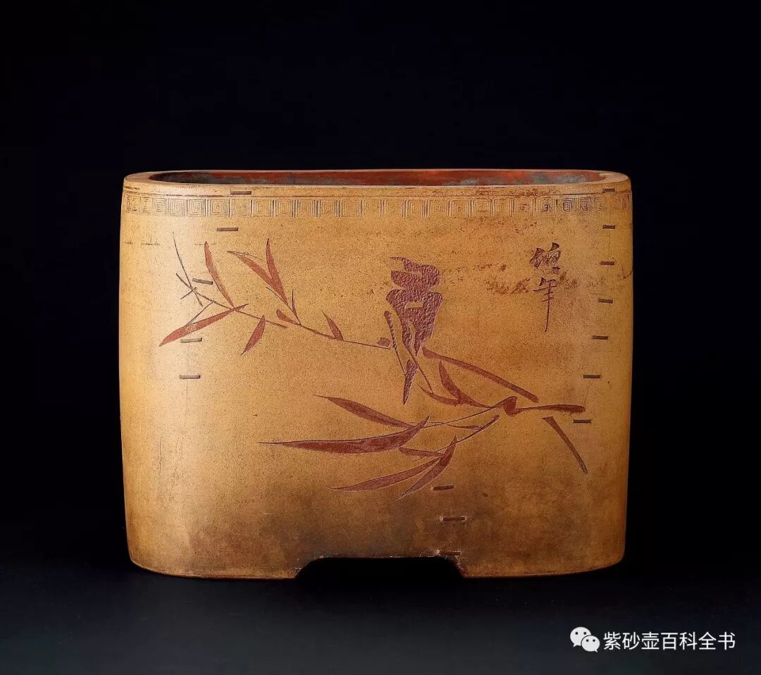 5023 民國(guó) 跂陶刻伯年畫稿竹紋橢圓形大花盆