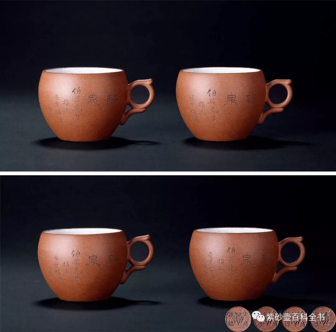 5013 民國(guó) 跂陶為伯英先生刻內(nèi)掛釉杯 (一套四只)