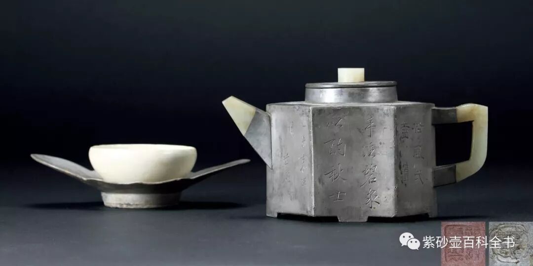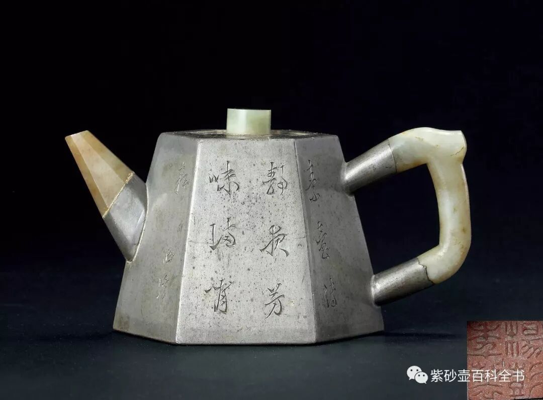 5035 清道光 楊彭年制王蔭刻三鑲玉錫包壺