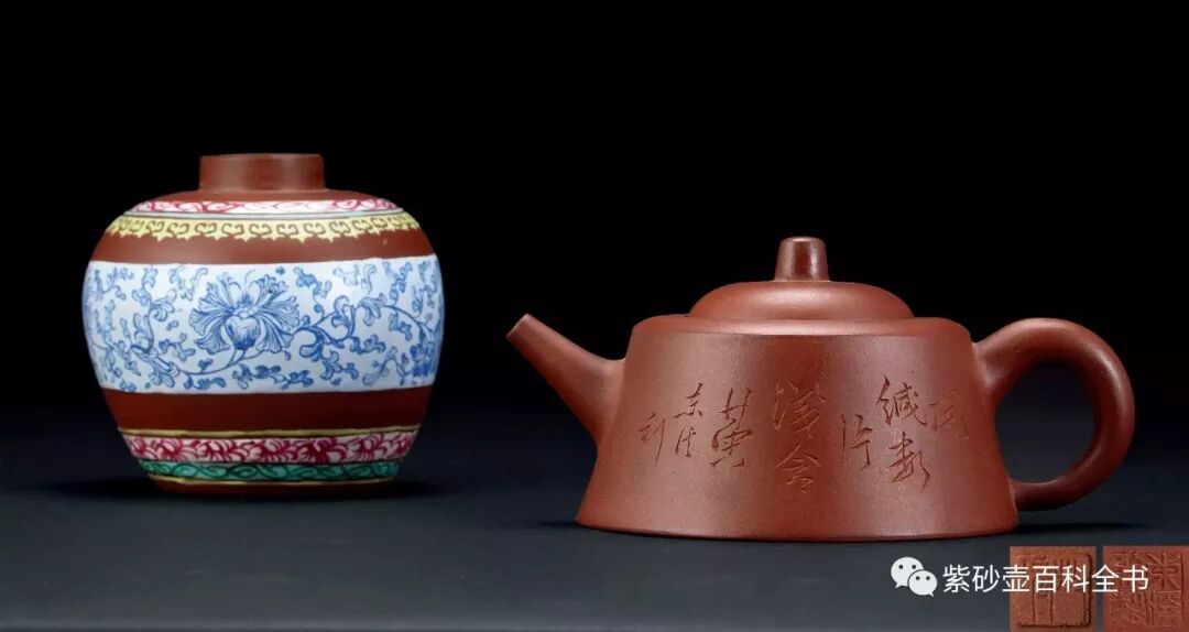 5048 清 加彩纏枝蓮紋茶葉罐、東溪刻字佛手圖紫砂壺