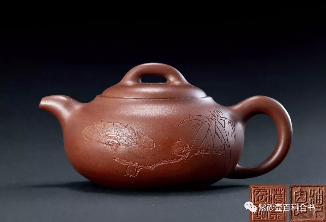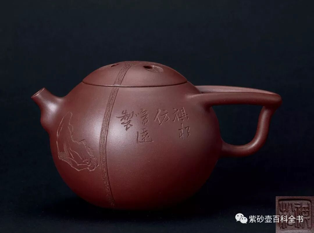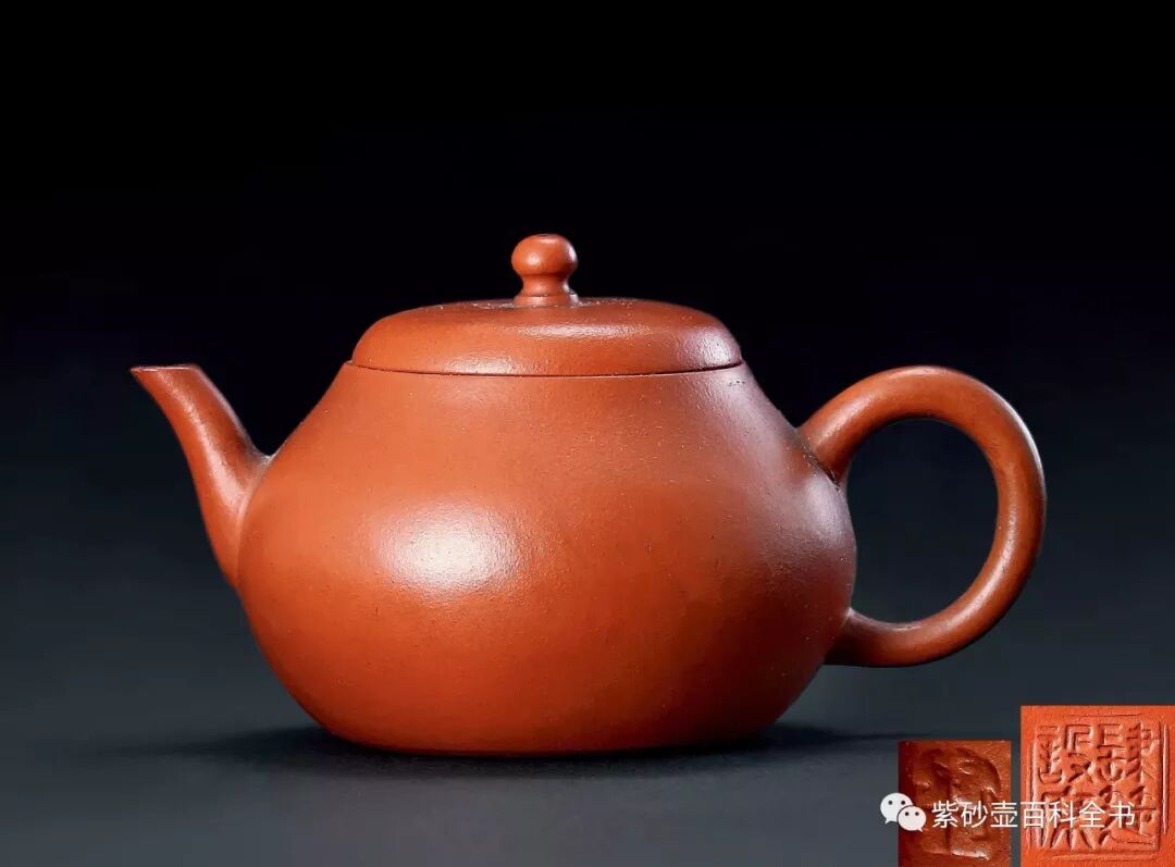 5005 清中期 孟臣款詩(shī)文朱泥梨形壺