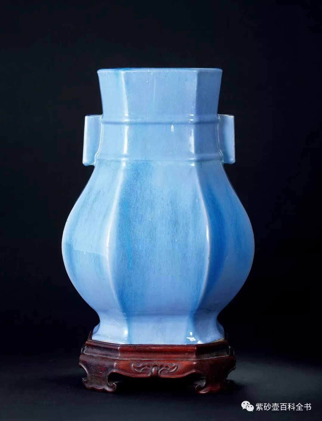 5022 清 宜鈞天藍(lán)釉八方貫耳瓶