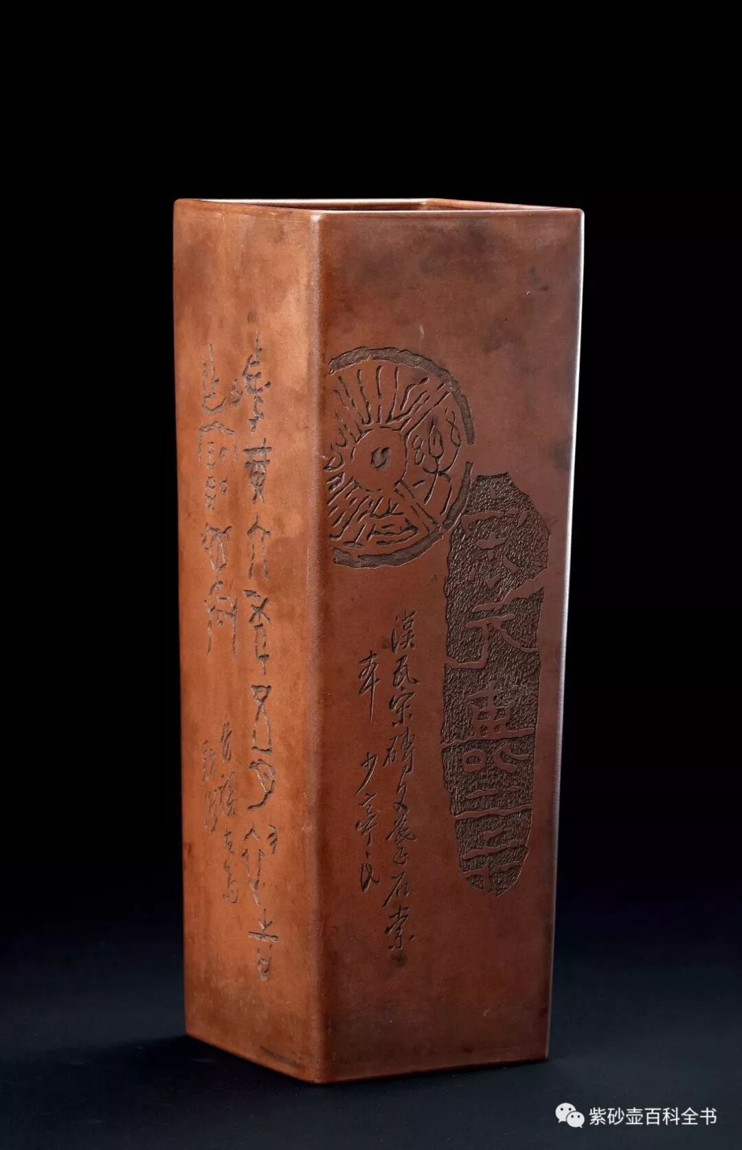 5053 清晚期 陳少亭刻詩(shī)文四方瓶