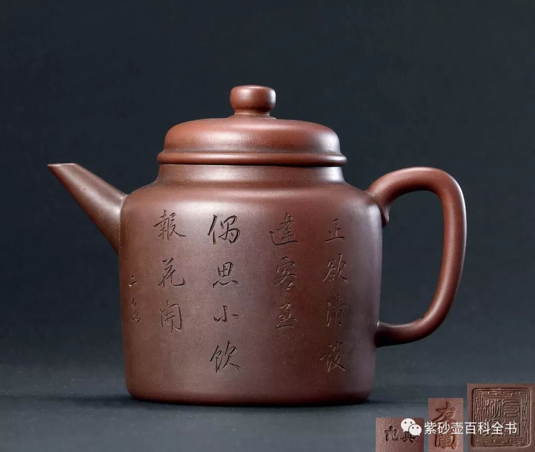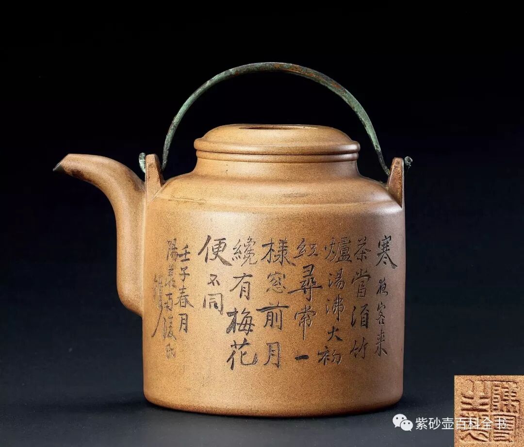 5036 清道光 范祿曾制芷庵刻詩(shī)文錫包紫砂三鑲壺