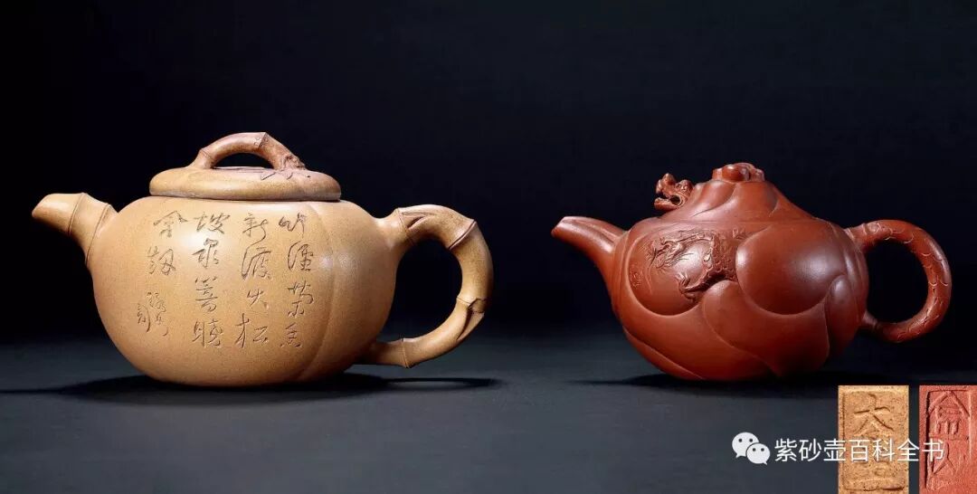 5065 民國(guó) 范大生制段泥詩(shī)文柿子壺、盒山款魚化龍壺